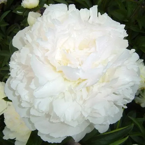 Махровые и шаровидные цветки поражают своей густотой и объёмностью. Средние размеры цветков не оставят равнодушными никого. Диаметр цветка достигает 15 см. Окраска белая, светлая и насыщенная, цветы выглядят невероятно привлекательно.Пышные и обильные цветки создают ощущение утончённой роскоши. Средний, сладкий аромат наполняет сад приятным благоуханием.
