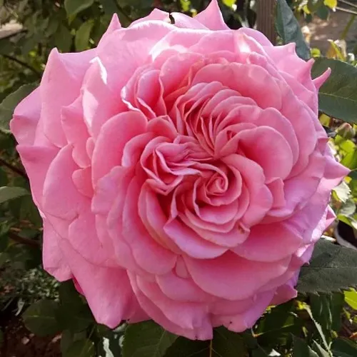 Цветки — главный акцент сорта. У Эшли они крупные, 10–12 см, густомахровые (более 40 лепестков), с классической чашевидной формой. Окрас насыщенный розовый, сохраняет глубину в жару и при ярком свете. Бутоны чаще формируются по одному на стебле, что делает сорт особенно удобным для срезки и создания букетов. Аромат мягкий, лёгкий — не доминирует и подходит тем, кто предпочитает нежный запах. Цветение длительное и повторное: несколько волн с начала лета до холодов, что позволяет долго наслаждаться декоративностью куста.